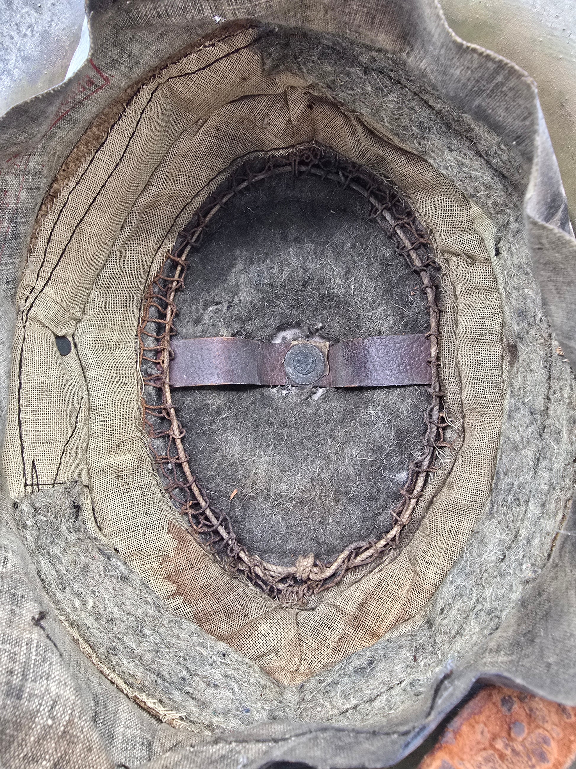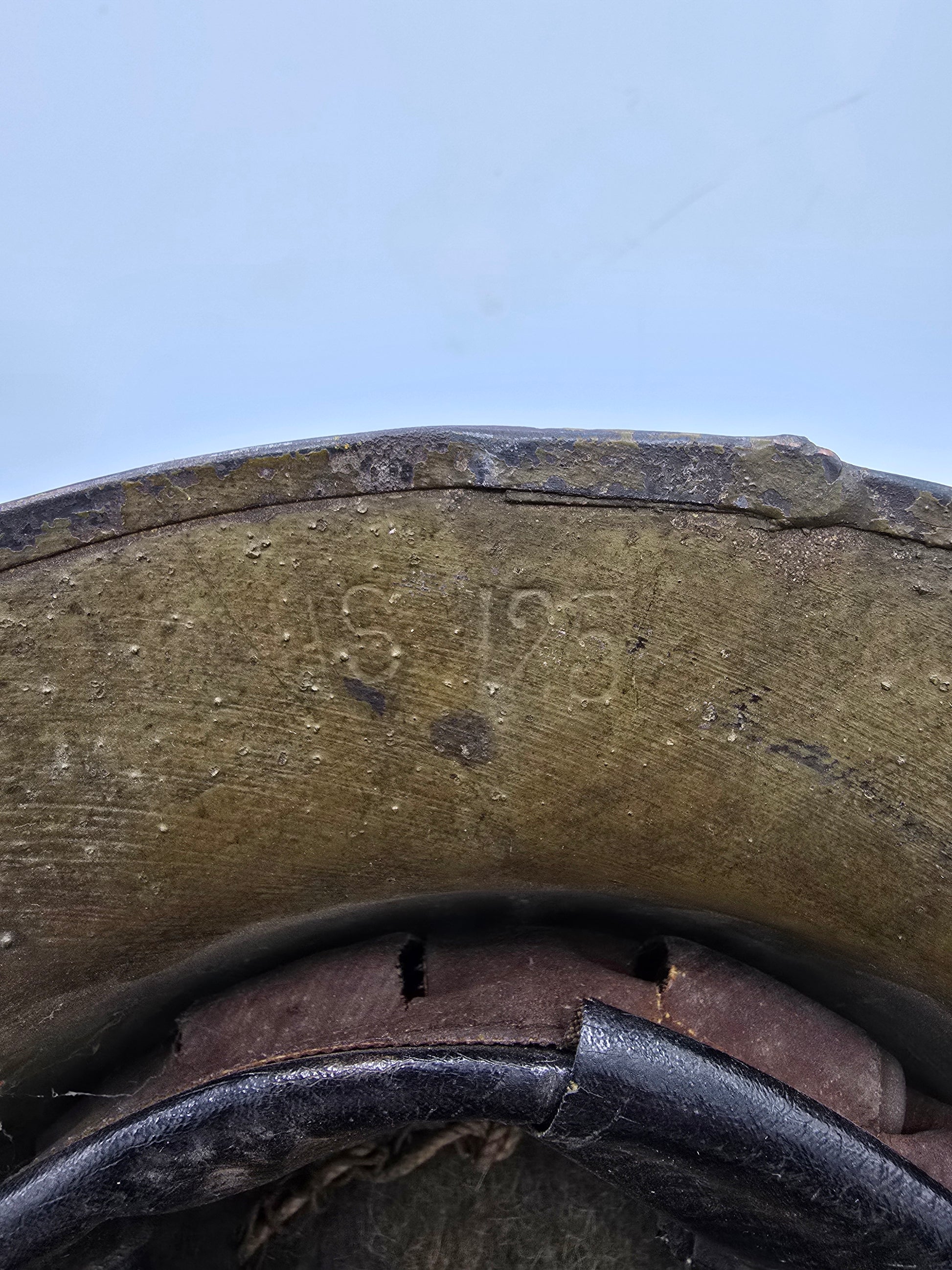 Casque original dans sont état de trouvaille. Jug cassé. Sinon complet. Jolie jus.