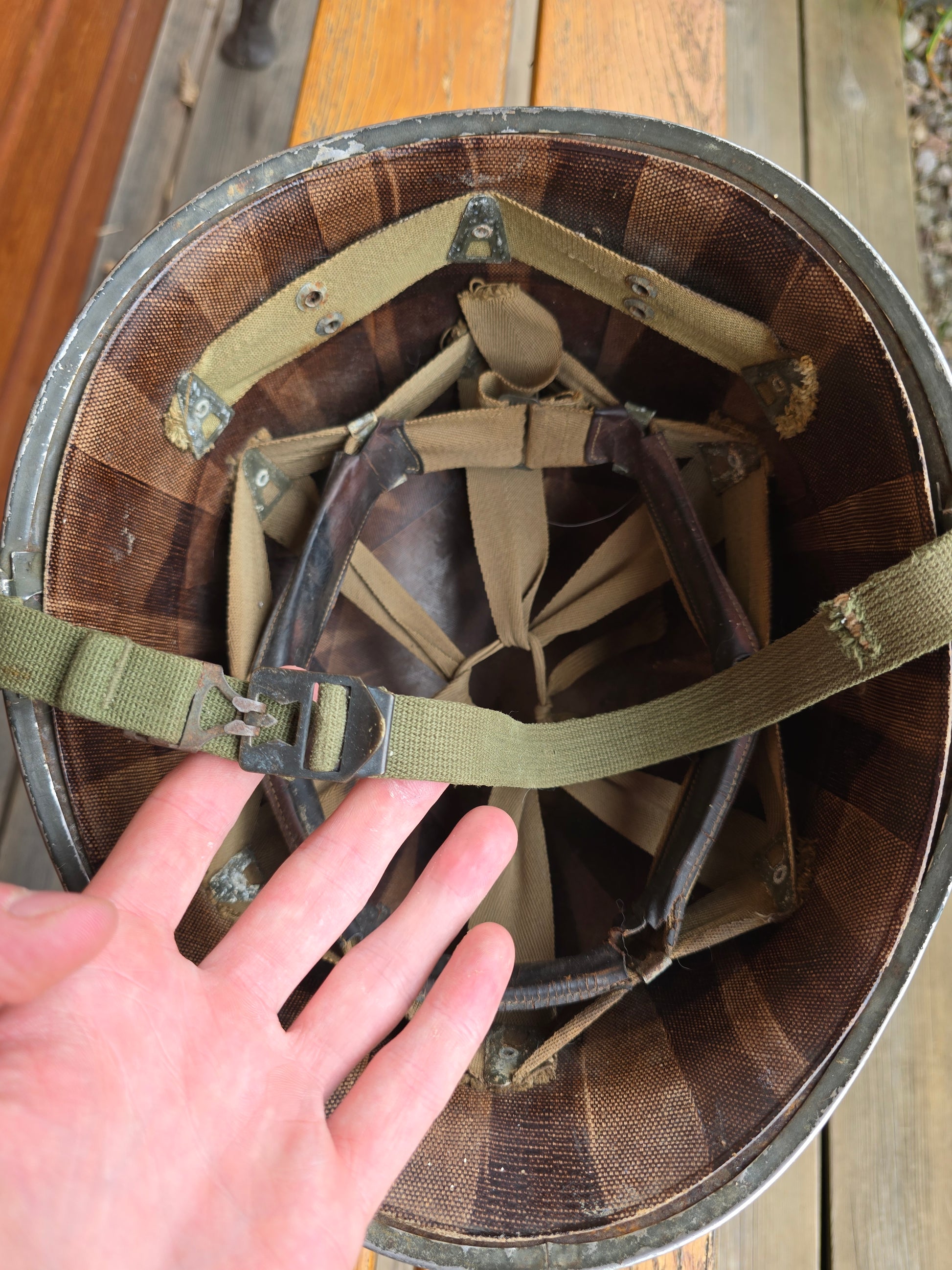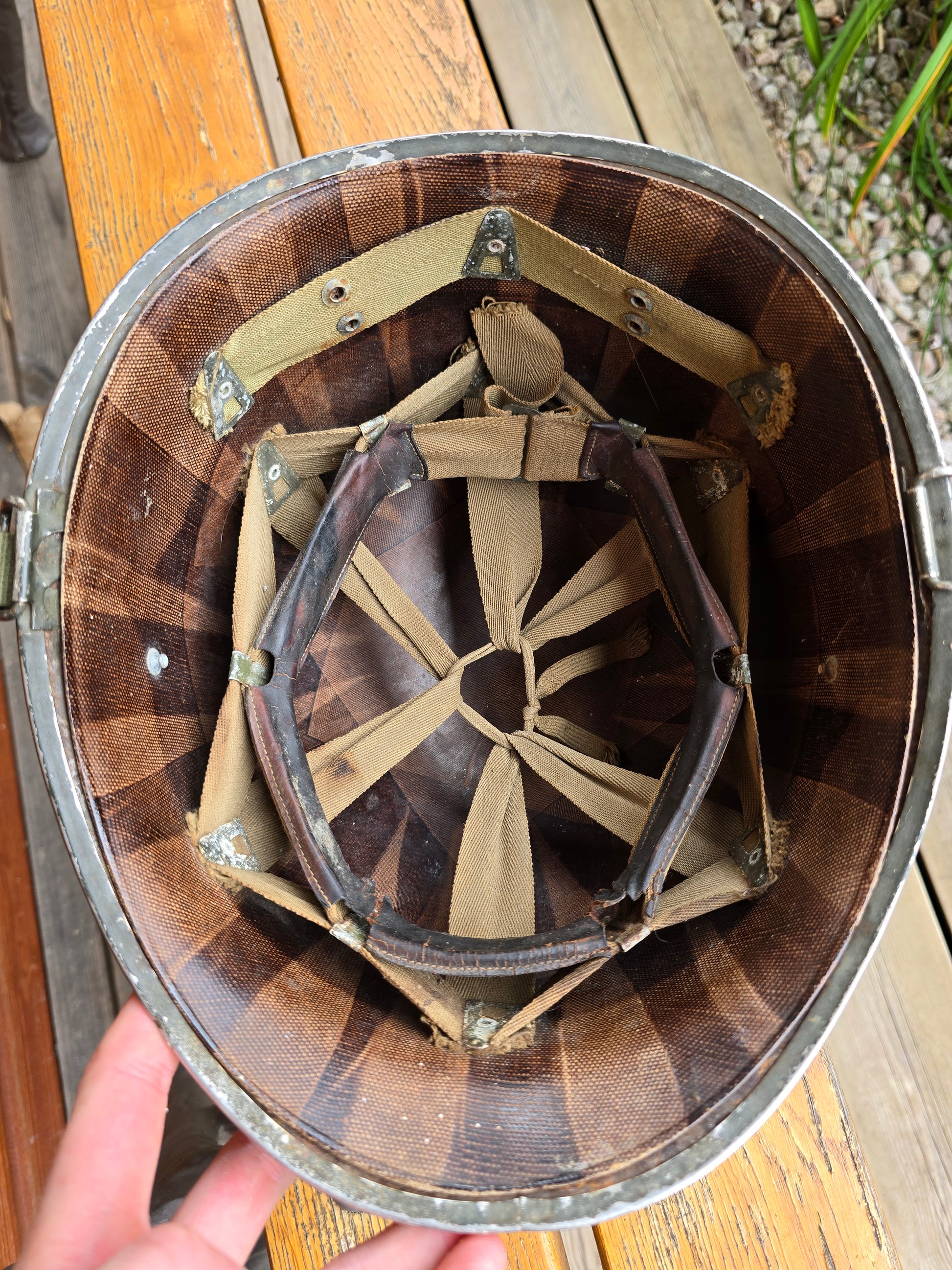 Casque US M1 pattes fixes d'usine modifié en mobile avec liner Westinghouse