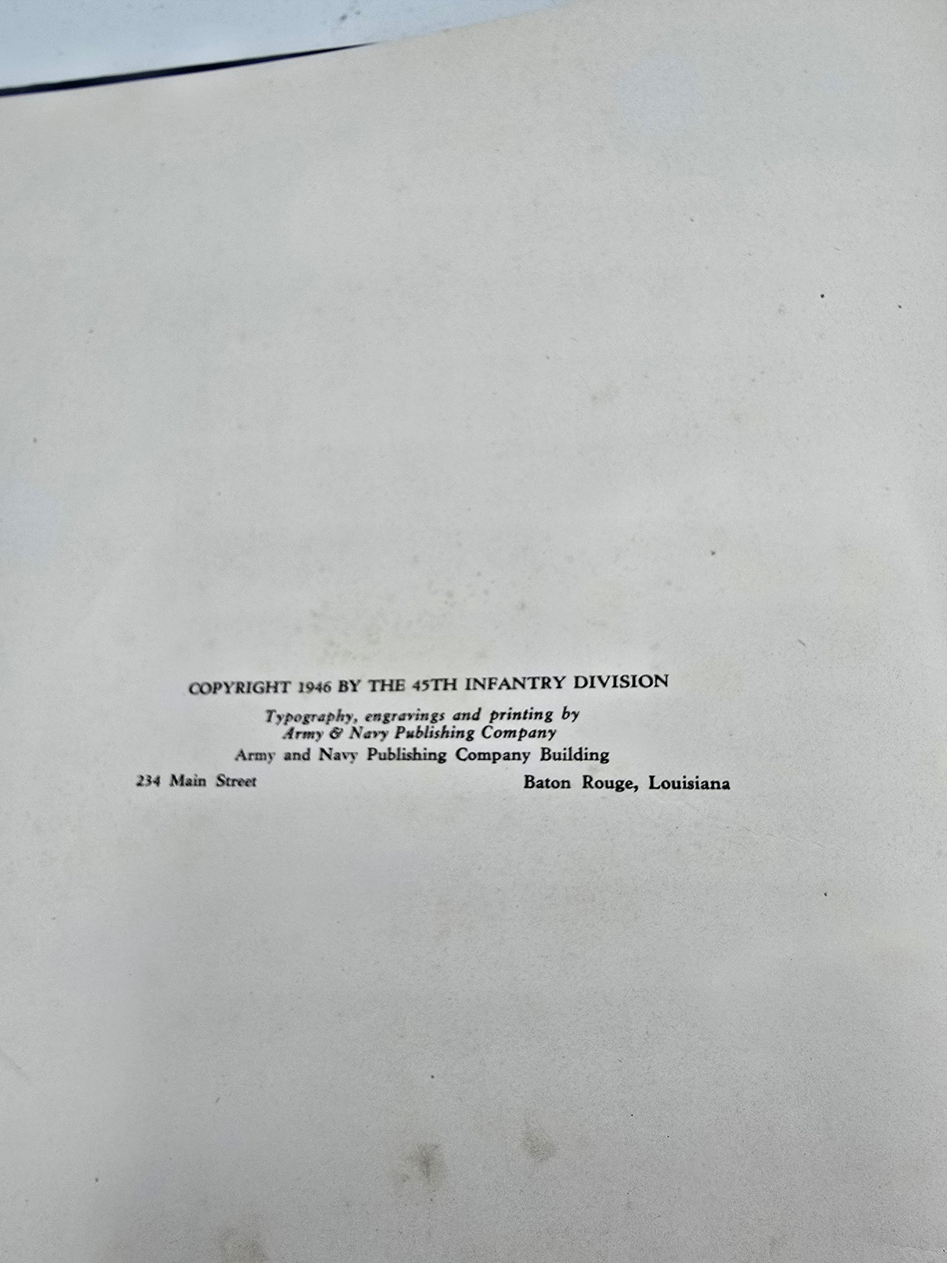 Super libre dédié à l'histoire de la 45th ID lors de la seconde guerre mondiale. Aucun manque ni déchirure. Belle état. Une photo d'un GI'S est présente dans le livre sans plus d'information. Nombreuses photos d'époque.