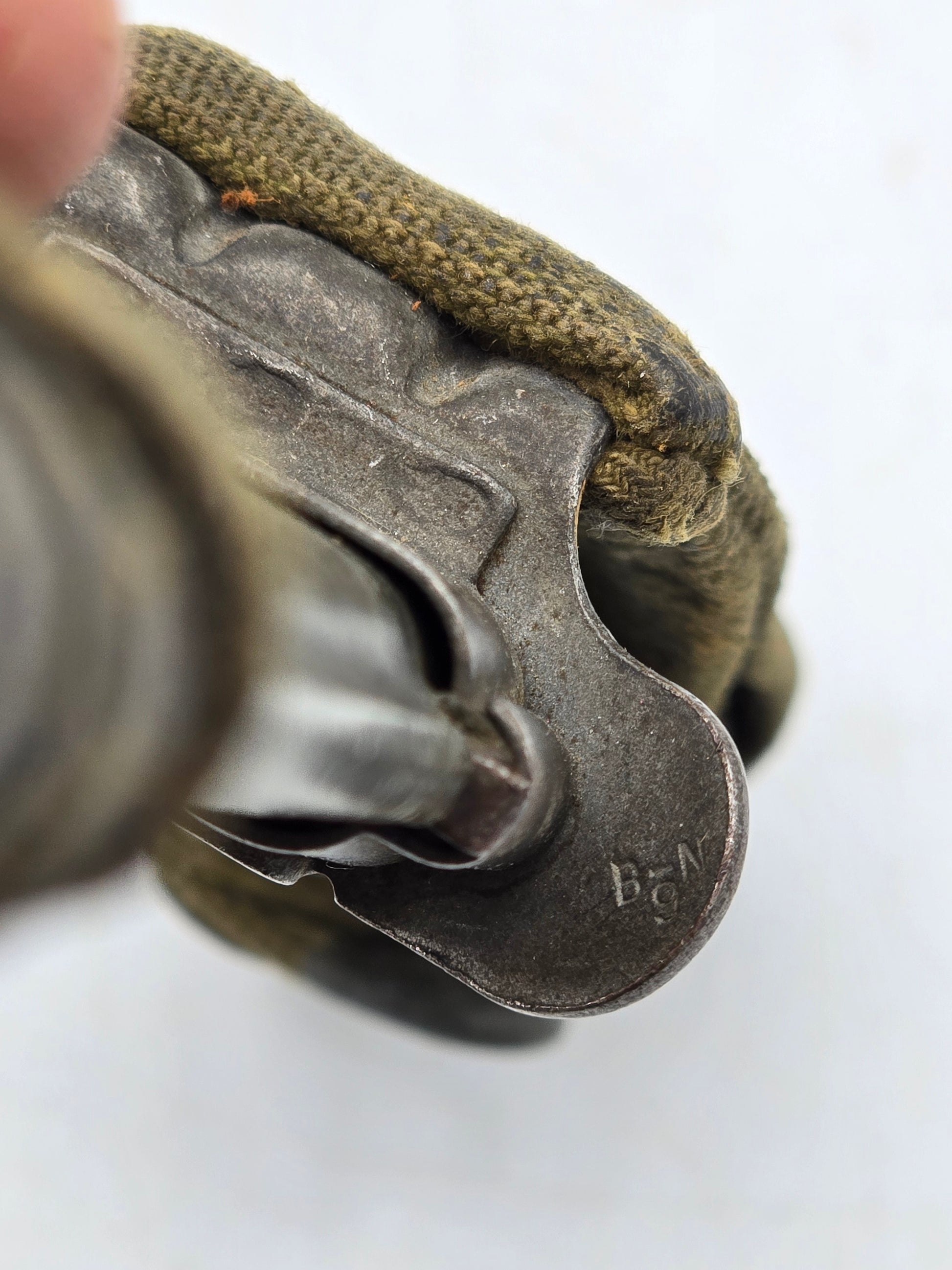 Tres jolie poignard. Pression fonctionnelle. Jeux minime dans la garde. Initiale gravé à l'arrière de l'étuis.