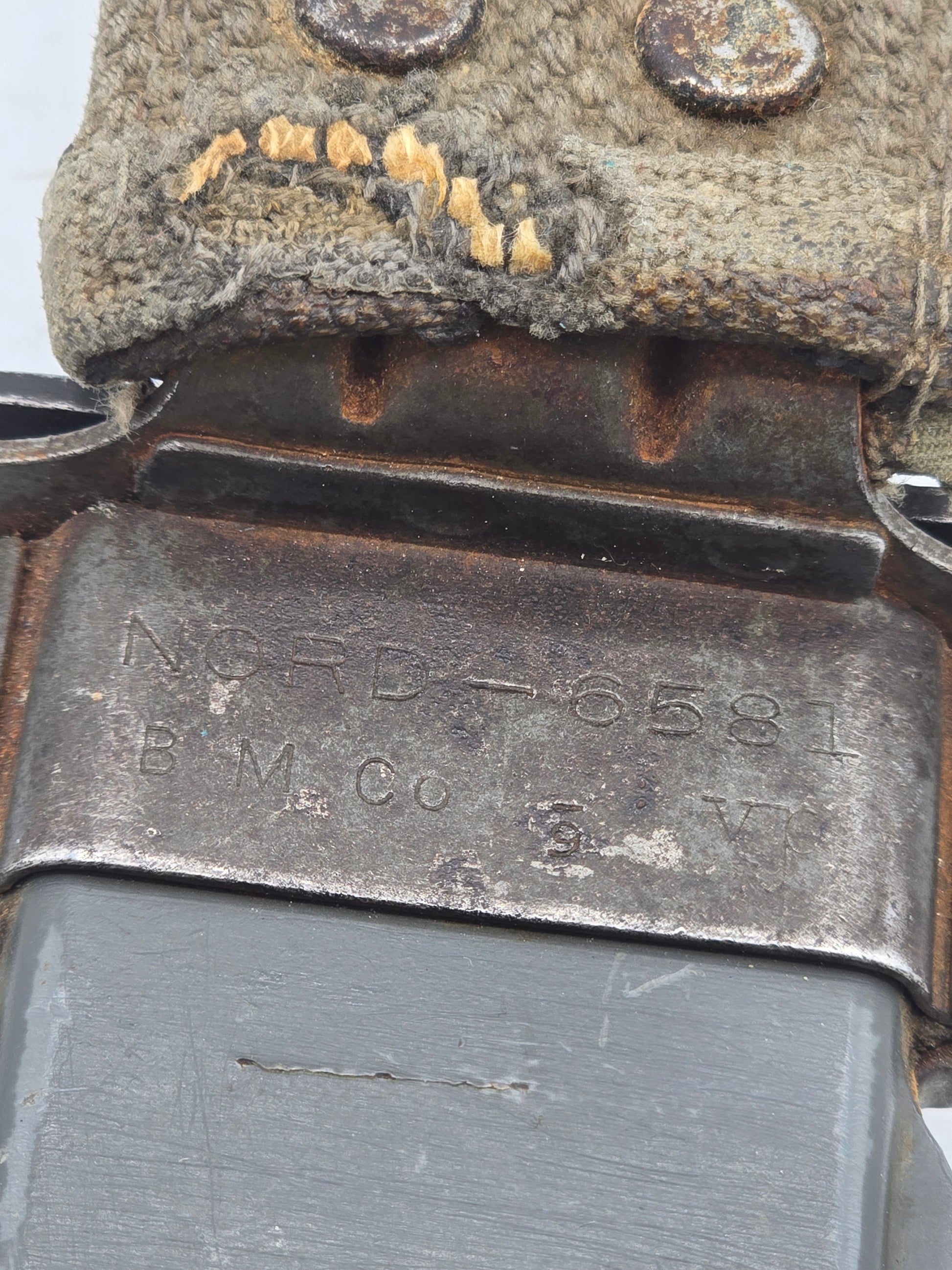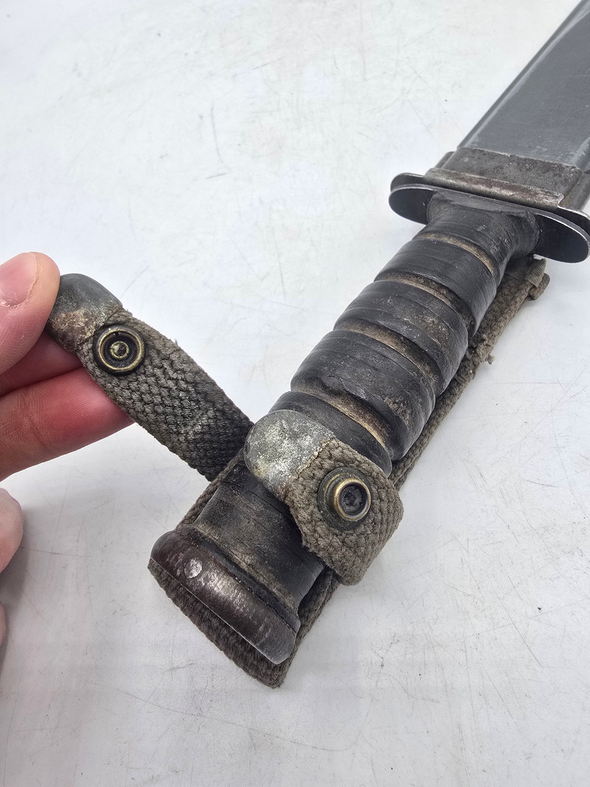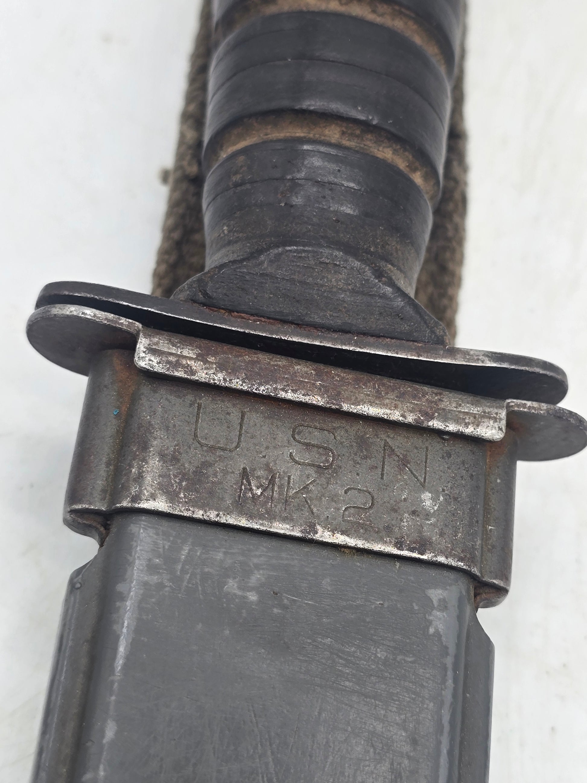 Sympathique poignard USN Mark2 dans sont jus. Porter et légèrement affûtée. Belle pièce état terrain.