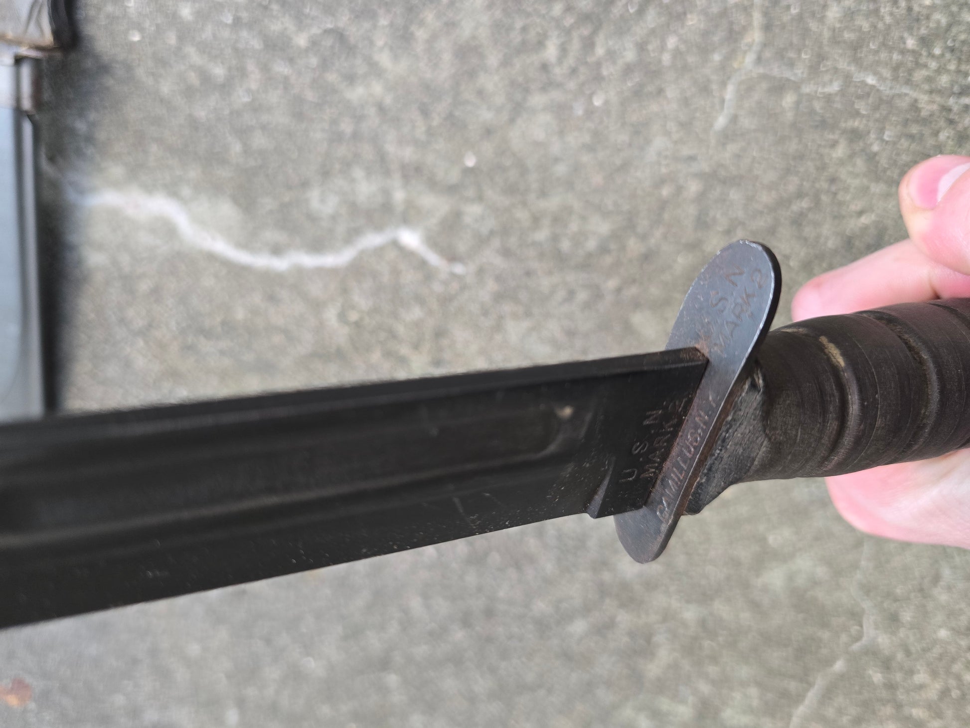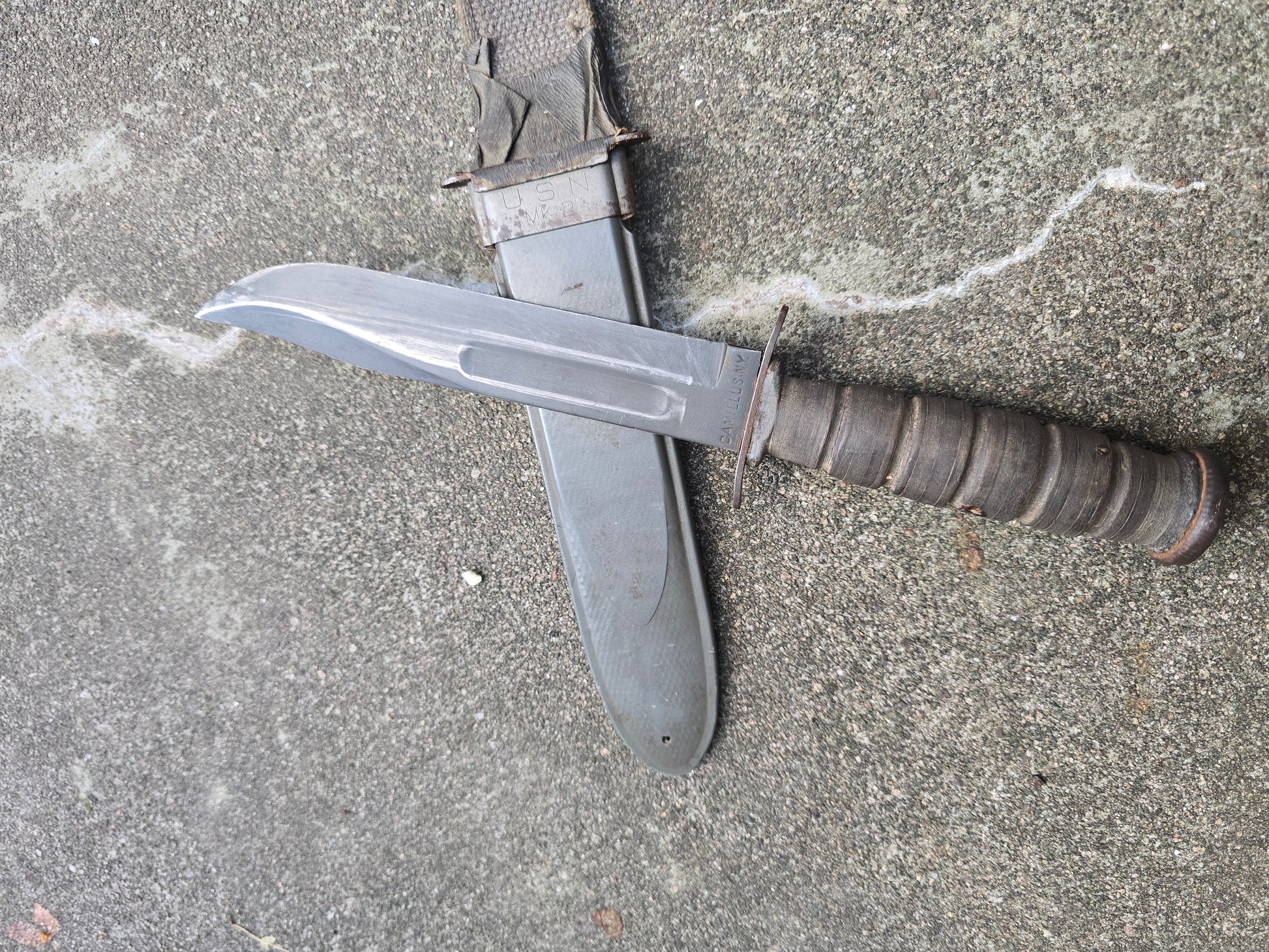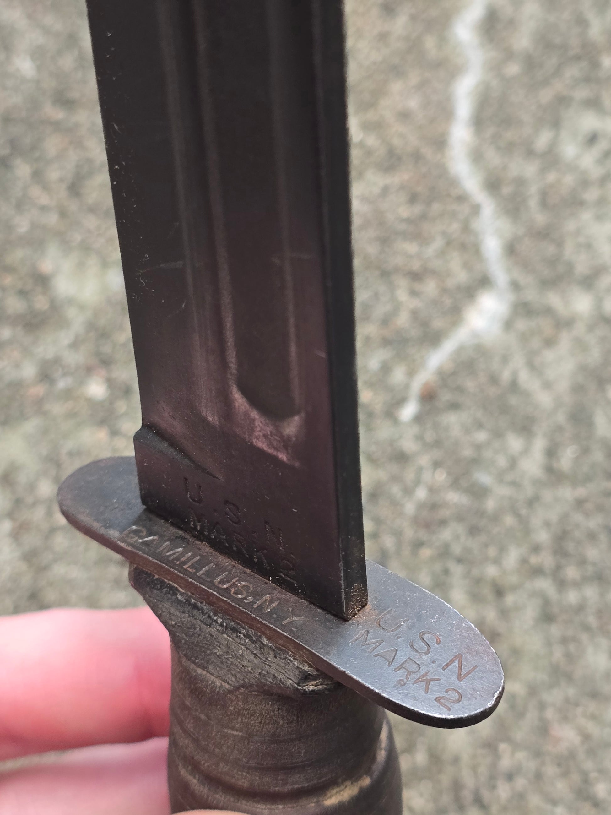 Rare poignard USN MK2 marquages garde et lame