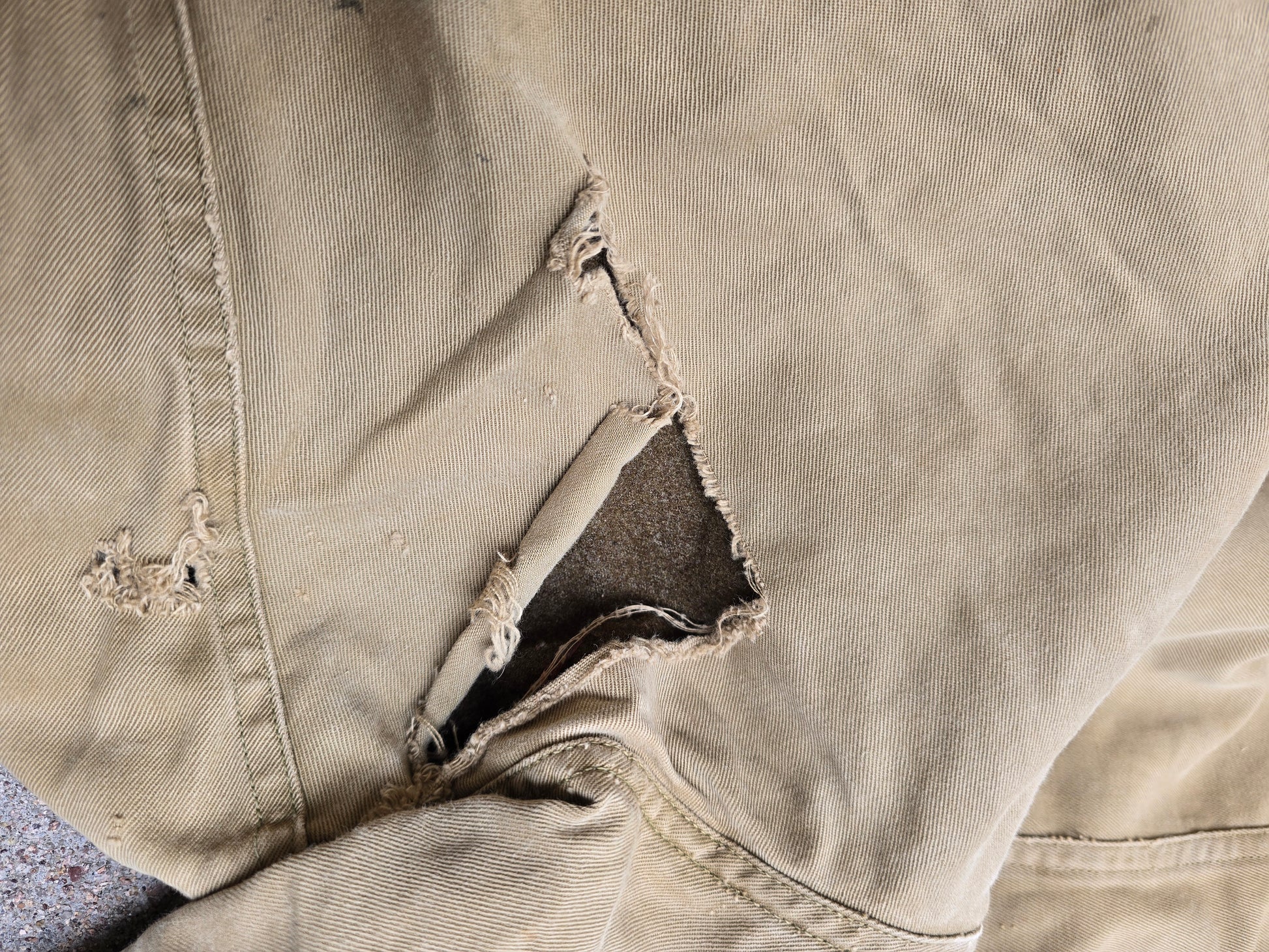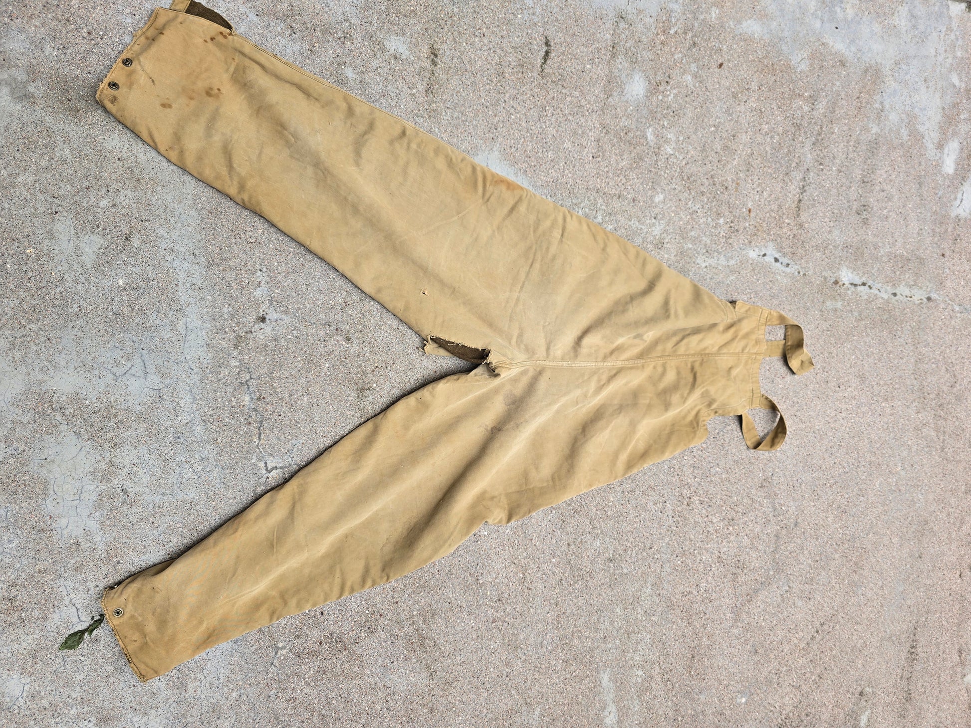 Salopette de tankiste dans son jus. Avec étiquette 🏷 datée 1942. Idéal mannequin taille M. Trou dans le web entre les jambes, à restaurer ou non.